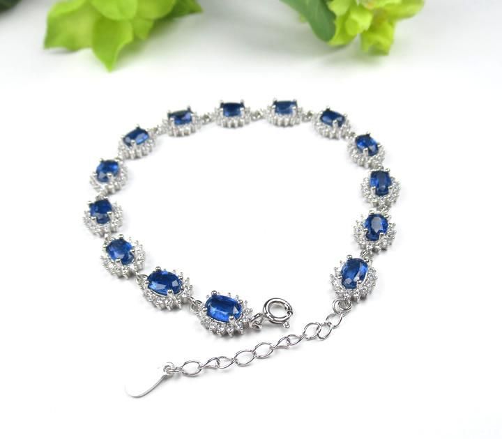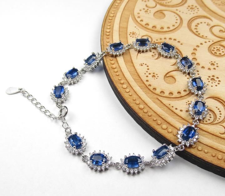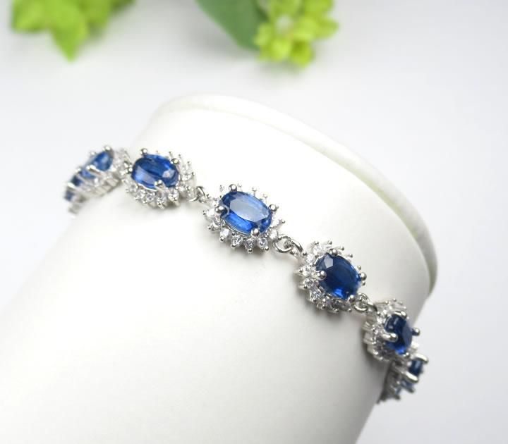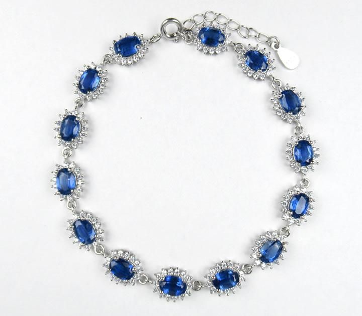 ネパール産 ブルーカイアナイトブレスレット 6x4mm シルバー925 14Kホワイトゴールドメッキ パワーストーン アクセサリー ジュエリー j-kay003