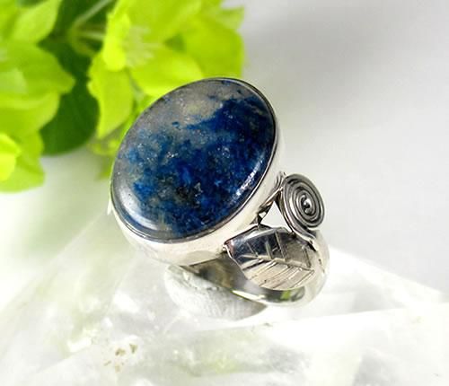 アズライト シルバー925リング サイズ変更無料 (現サイズ12号)頭脳と強化 と深い癒しの石 パワーストーン j-azurr008