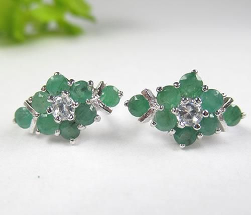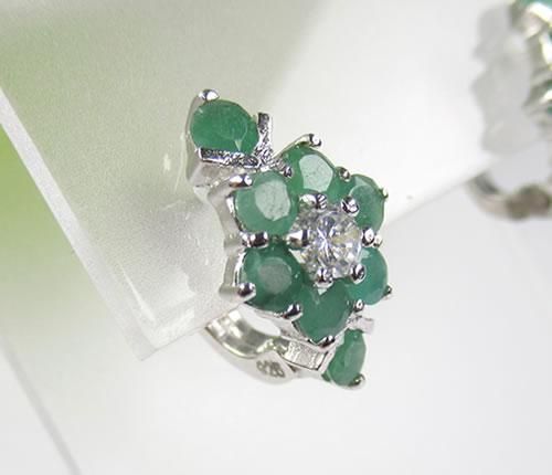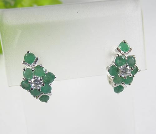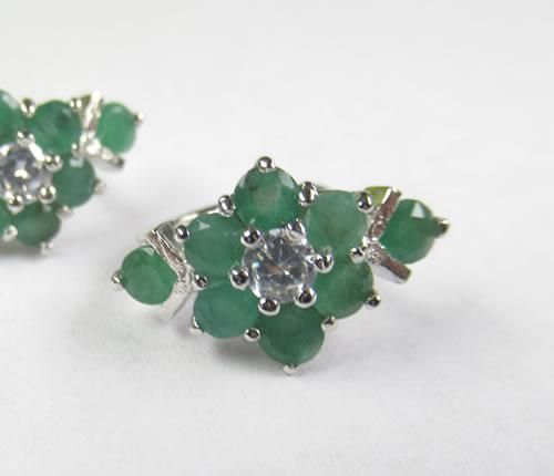 エメラルド・キュービックジルコニアピアス シルバー925にロジウムメッキ 鮮やかなグリーンが濃く美しいエメラルドのフラワーピアス j-emep003
