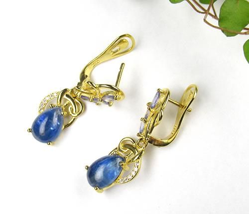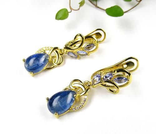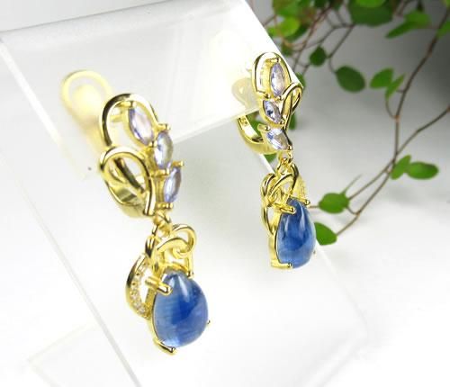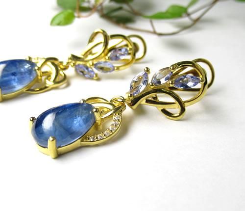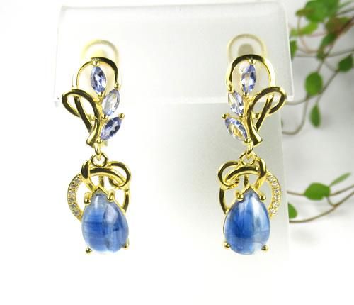 ネパール産ブルーカイアナイト12×8mmティアードロップ タンザナイト キュービックジルコニア シルバー925に14Kメッキ ピアス j-kay001