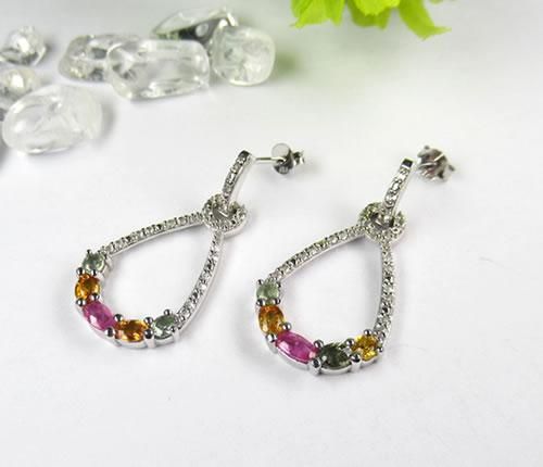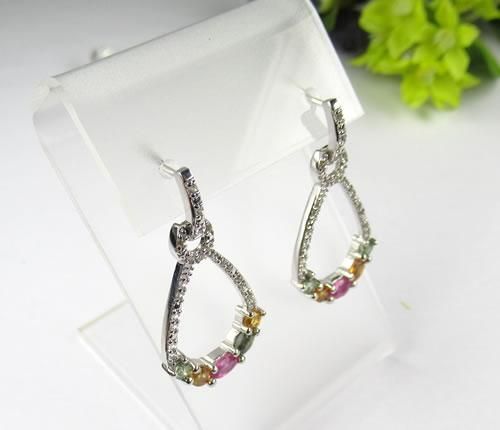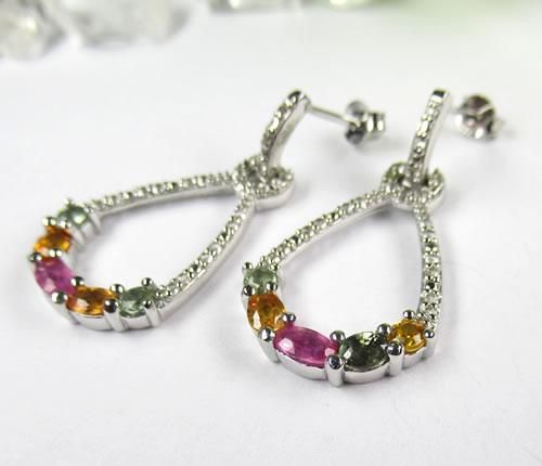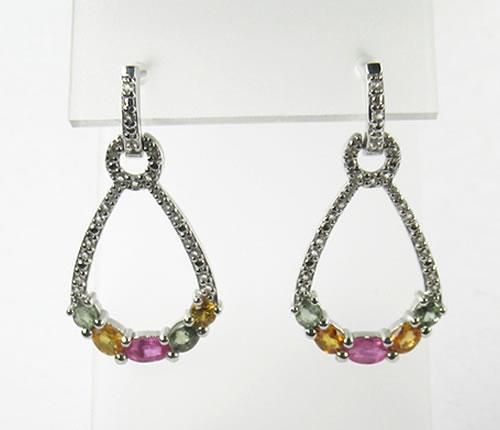 【訳あり】天然ルビー 天然パパラチア(オレンジ)andグリーンサファイア ホワイトトパーズ ピアス シルバー925 ホワイトゴールドメッキ j-rub003