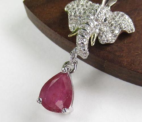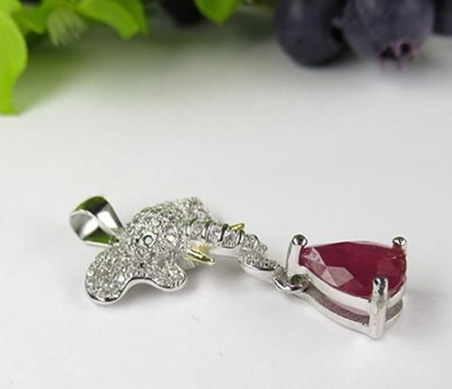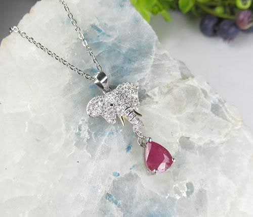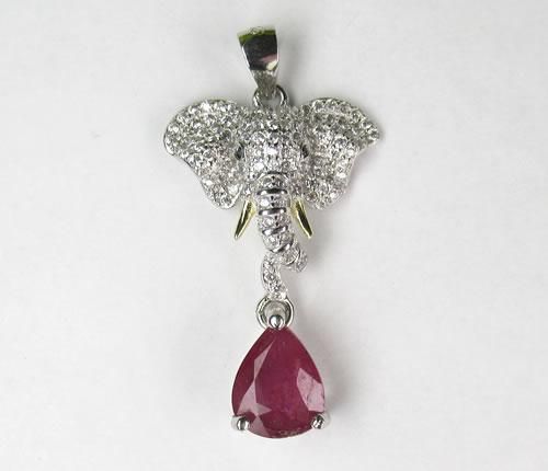 ルビー エレファント ペンダント シルバー925 ホワイト&イエロー14Kゴールドメッキ加工 j-rub005