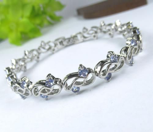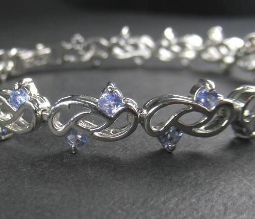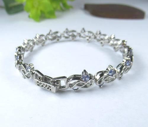 タンザナイトブレスレット シルバー925にロジウムメッキ 3ミリのタンザナイトが合計30個の豪華なブレス j-tanzab001