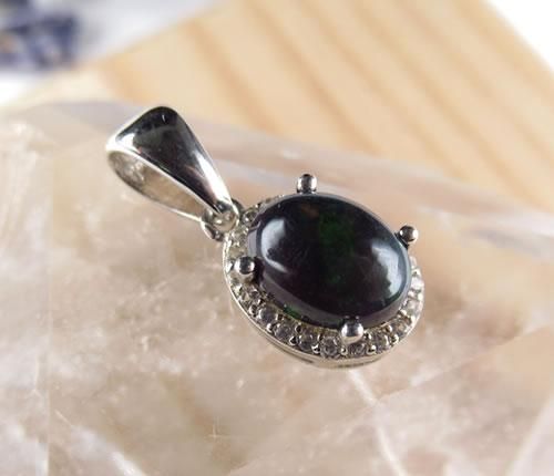 ブラックオパール 8×6mm シルバー925 ペンダント 願いを現実化の石 j-opa001