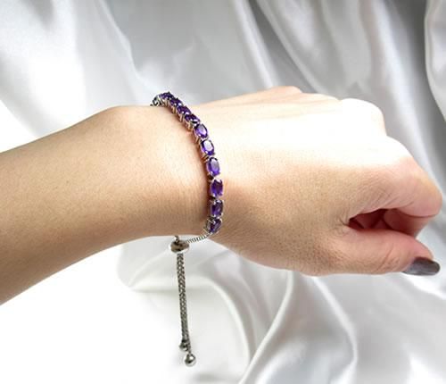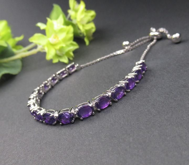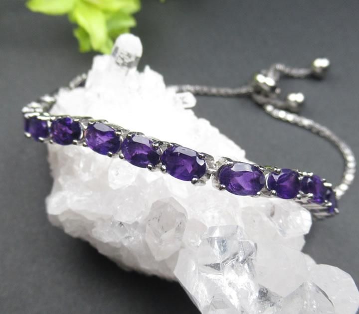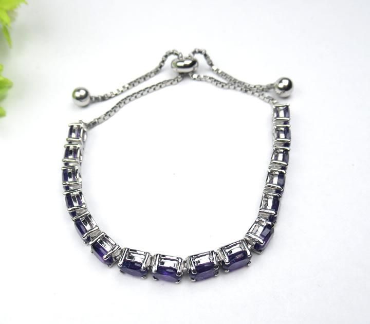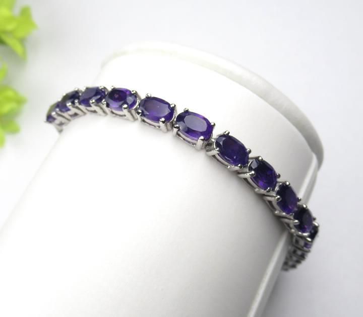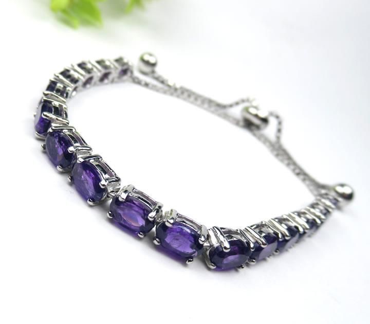 ディープカラー高品質アメジスト ブレスレット シルバー925 14Kメッキホワイトゴールド パワーストーン アクセサリー ジュエリー j-ame002