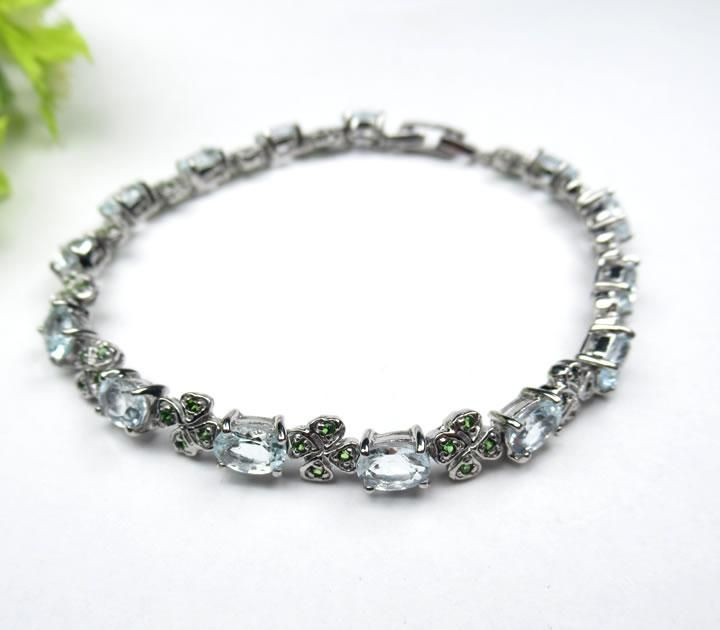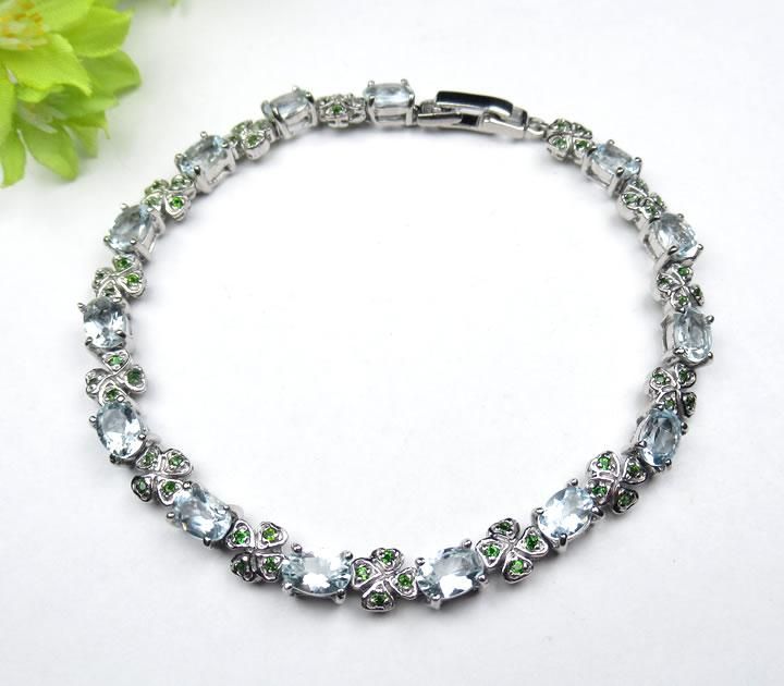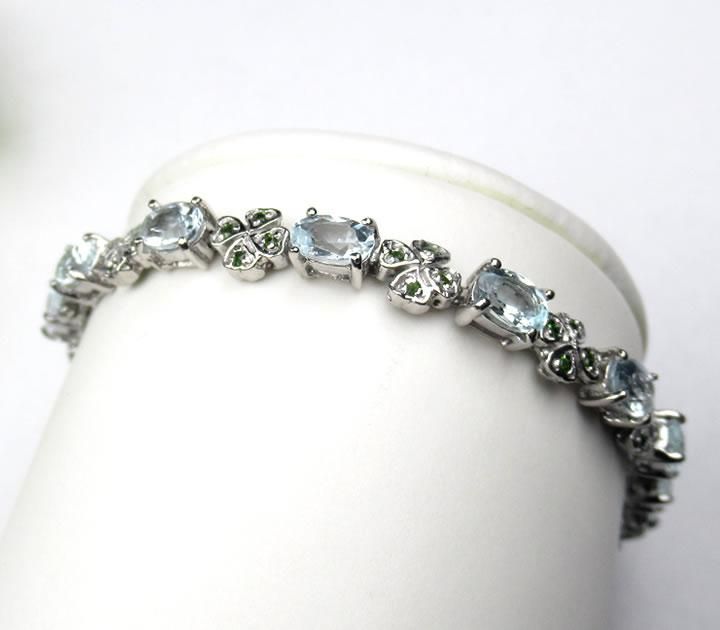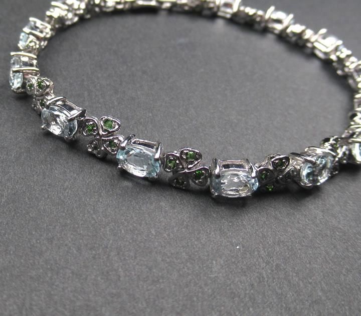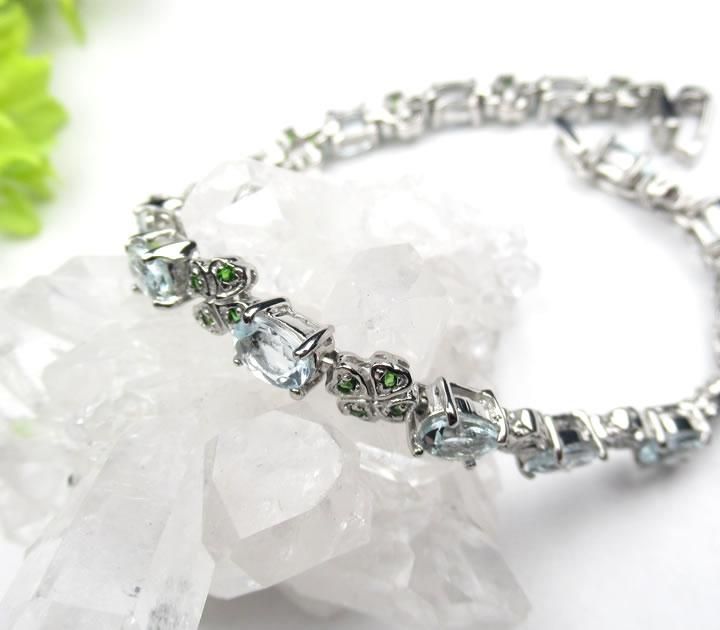 クロムダイオプサイドの小さくとも存在感のある華やかで明るいグリーンはこのブレスのデザインにぴったりです。