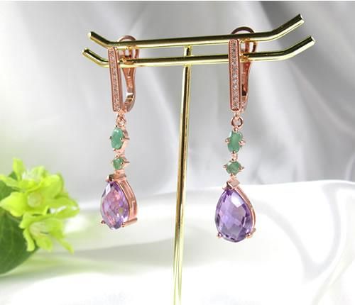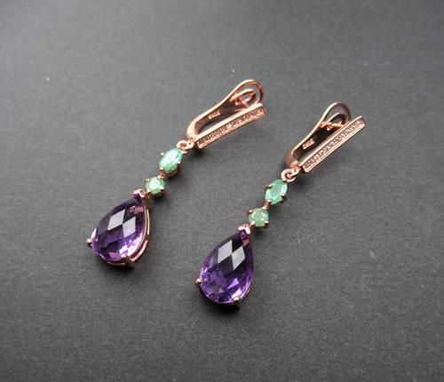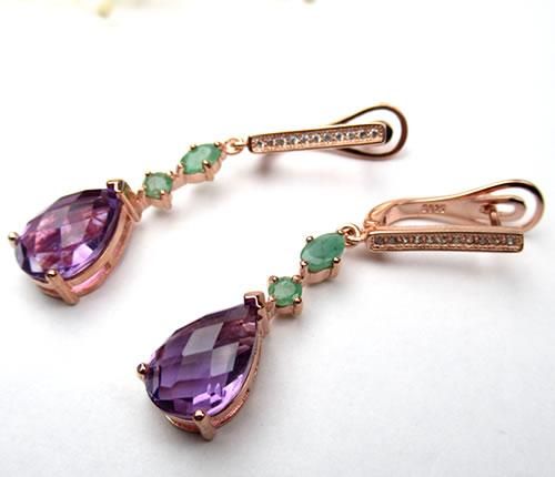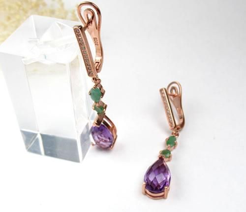 アメジスト12x8mm エメラルド Czピアス シルバー625 14Kローズゴールドメッキ パワーストーン アクセサリー ジュエリー j-ame004