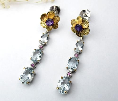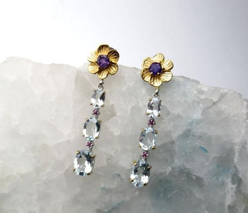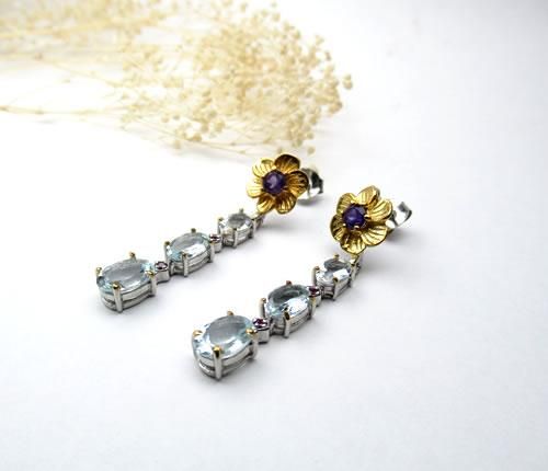非加熱サンタマリアアクアマリン アメジスト ロードライトガーネット14KWG 14KYGメッキ パワーストーン ジュエリー j-aqua005
