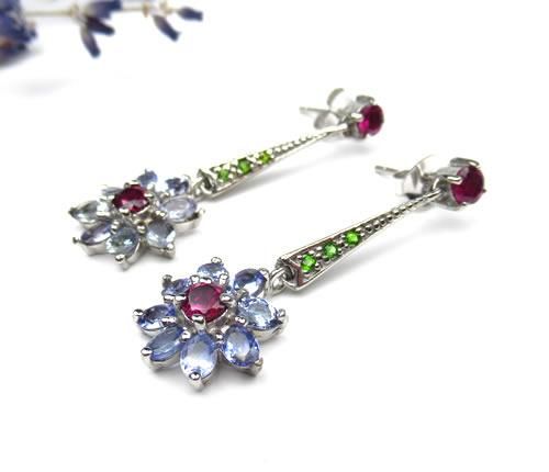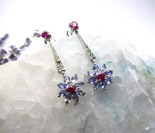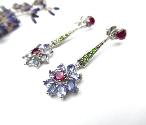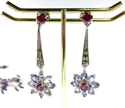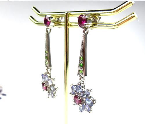 タンザナイト ロードナイトガーネット クロムダイオプサイド ピアス14Kホワイトゴールドメッキ シルバー925 ジュエリー j-tanzab007