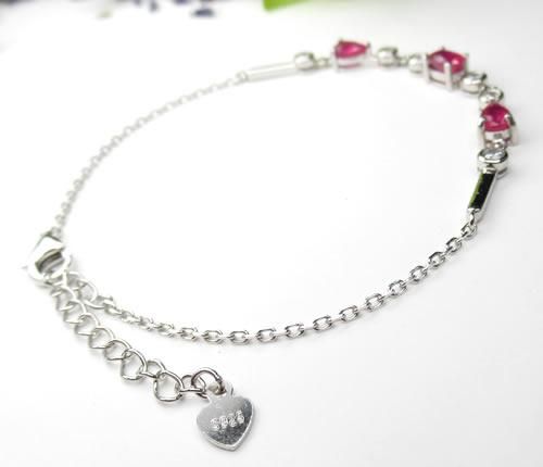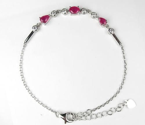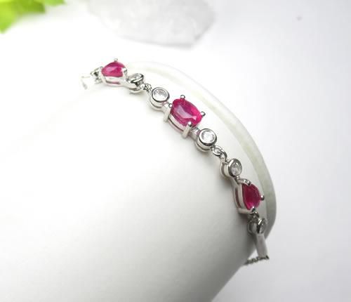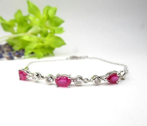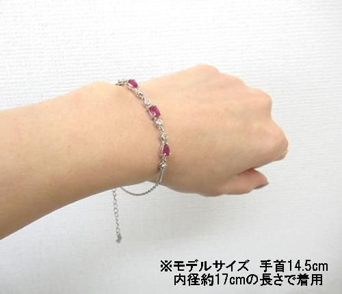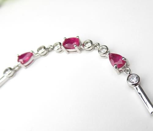 マダガスカル産ルビー6×4mm キュービックジルコニア1mm ブレスレット シルバー925 14KWGメッキ ワクワク感 充実感 驚くほどのやる気と情熱 宝石の女王 j-rub009