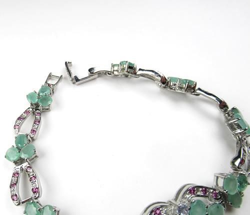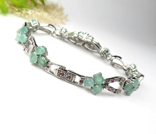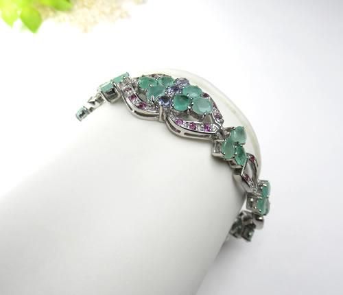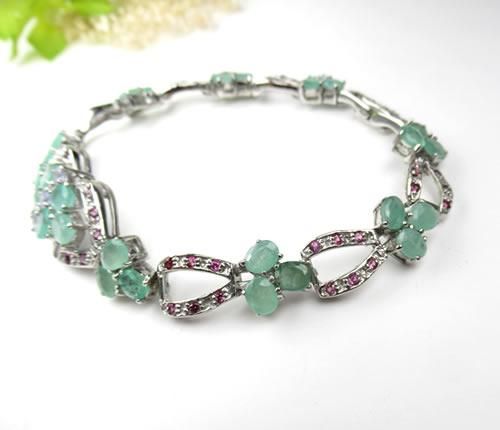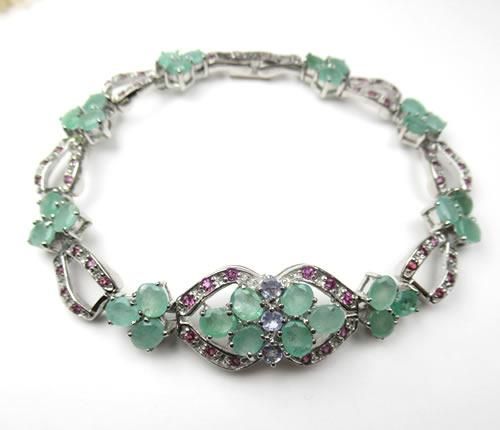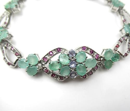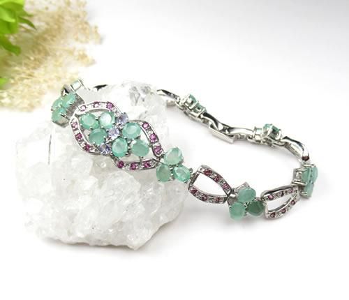ブラジル産エメラルド ロードライトガーネット タンザナイト ブレスレット シルバー925 14Kホワイトゴールドメッキ j-emepd006
