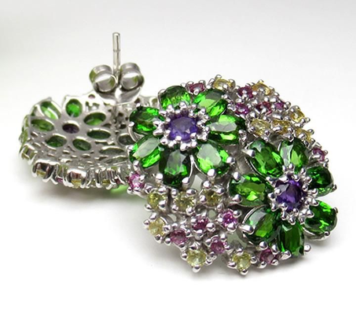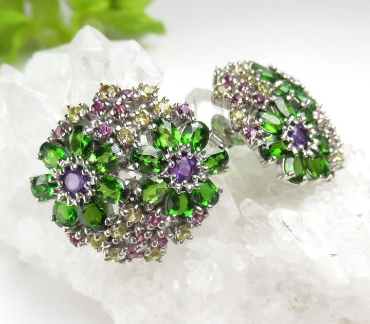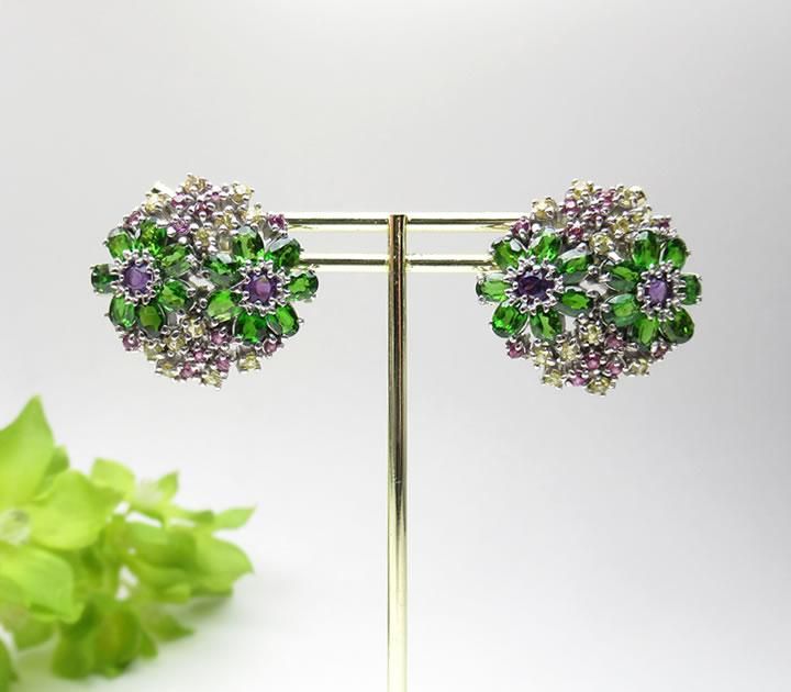クロムダイオプサイド アメジスト イエローサファイア ロードライトガーネット ピアス シルバー925 14KWGメッキ 優れた j-diop002