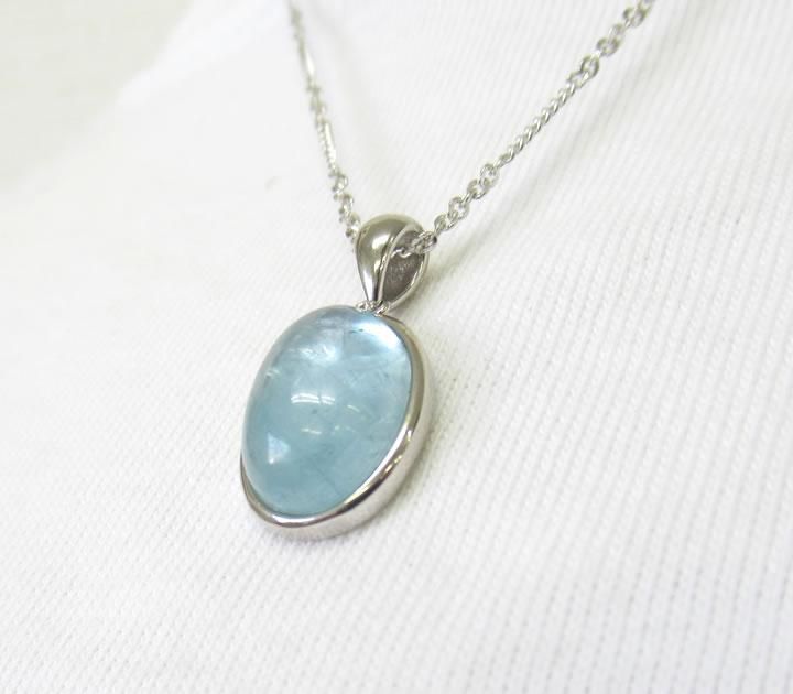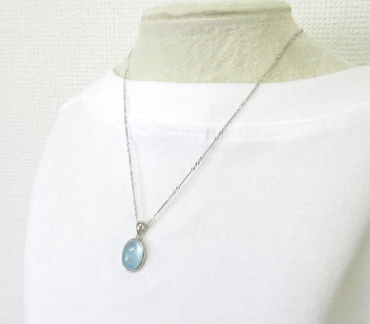 非加熱サンタマリア アクアマリン ペンダント14x10mm シルバー925 14Kホワイト ゴールドメッキ チェーン付き 人間関係 夫婦関係 創造的表現 j-aqua009
